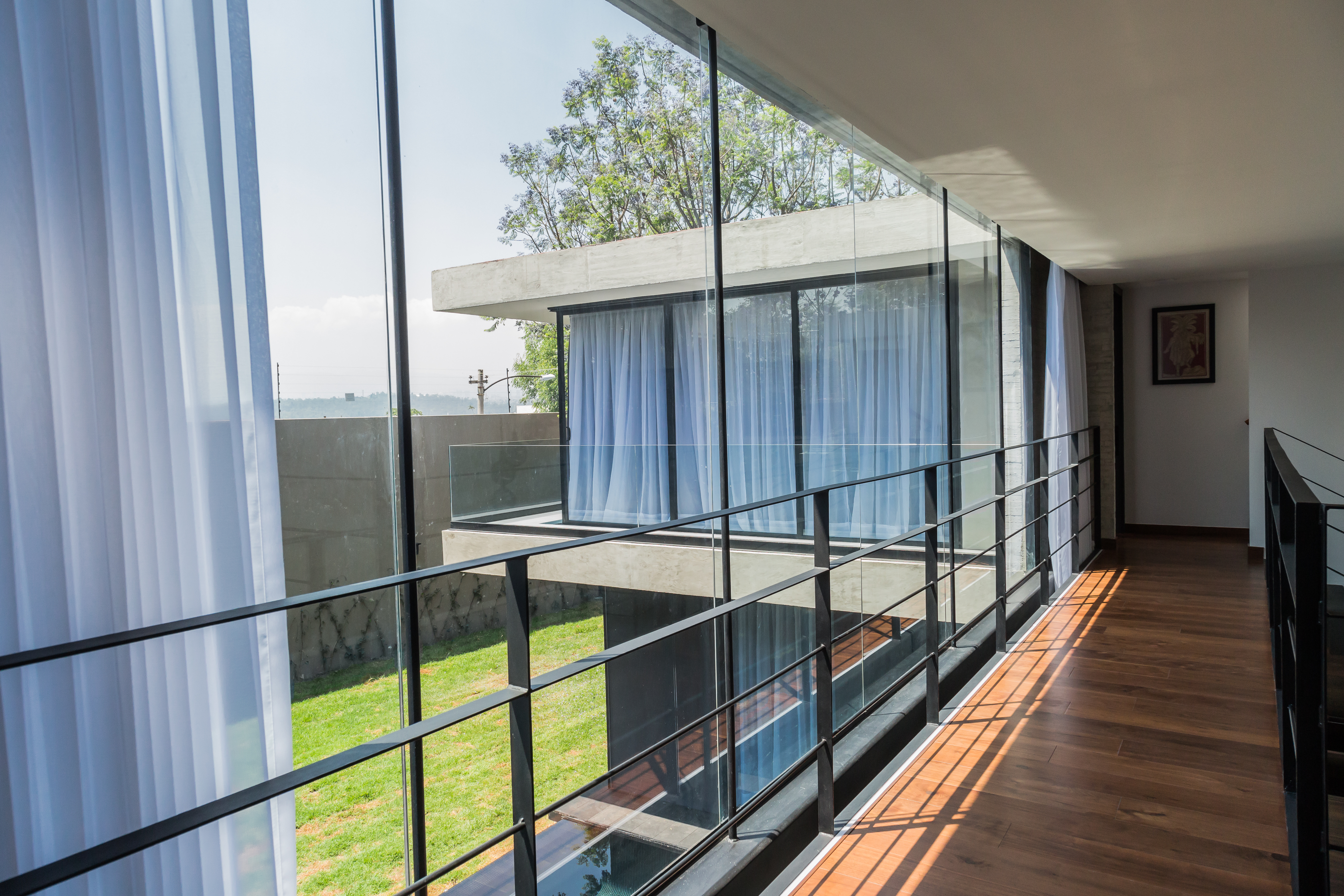 La doble altura de la casa es el punto vertebral de encuentro de las actividades familiares, su pequeño jardín trasero, alberca y patio frontal, estimulan la relajación y confort.