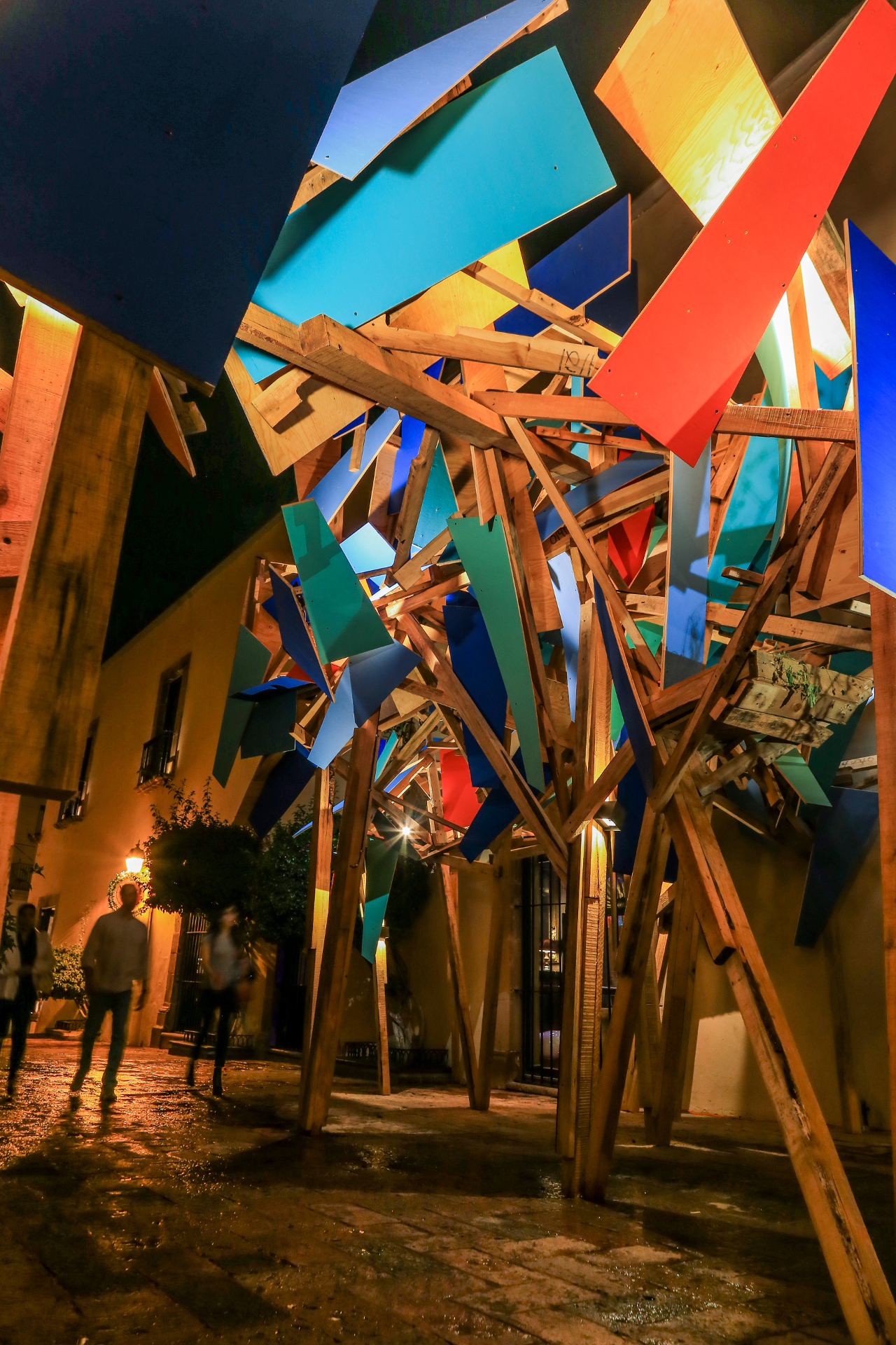 La idea, al trabajar en proyectos como The Forest (Antonio O’Connell, 2018) es dar un valor justo a la obra en todo momento mientras esté expuesto. La primer tarea fue la de dotar de vida propia a la escultura, por esta razón todas las luminarias se colocaron al interior de la obra, de esta manera logramos un juego de sombras sobre las paredes y el piso que generó la sensación de invasión, sin embargo, más allá de ahogar la arquitectura se consiguió complementarla.