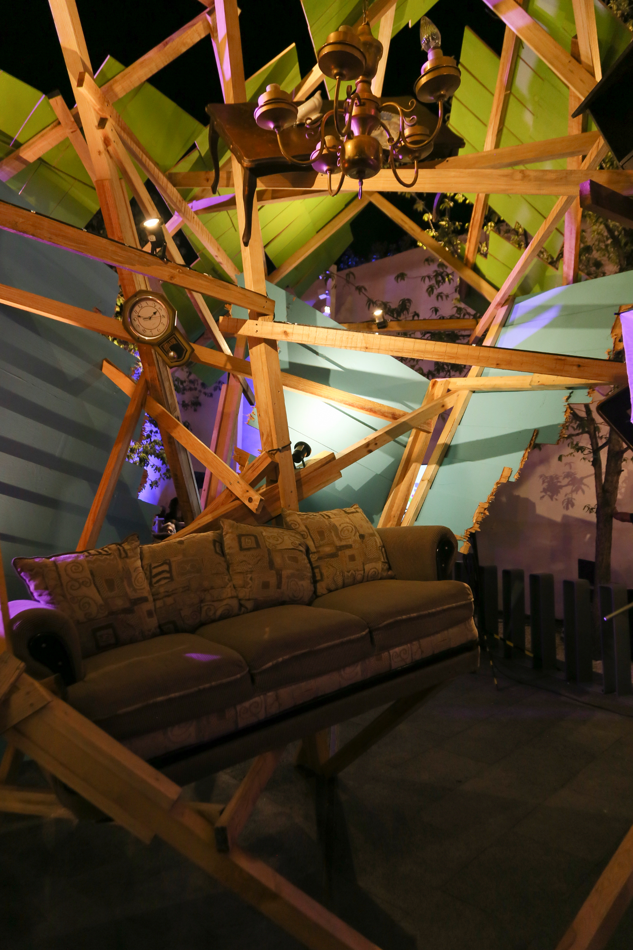 En House, O’Connell busca representar la situación familiar moderna simulando una explosión que expande todos los elementos y los aleja del núcleo. Pensando en esto, buscamos que las fuentes de luz expresaran esa misma explosión surgiendo del centro y generando destellos hacia el exterior, logrando así, un estímulo visual que fomenta la reflexión de nuestra situación actual..