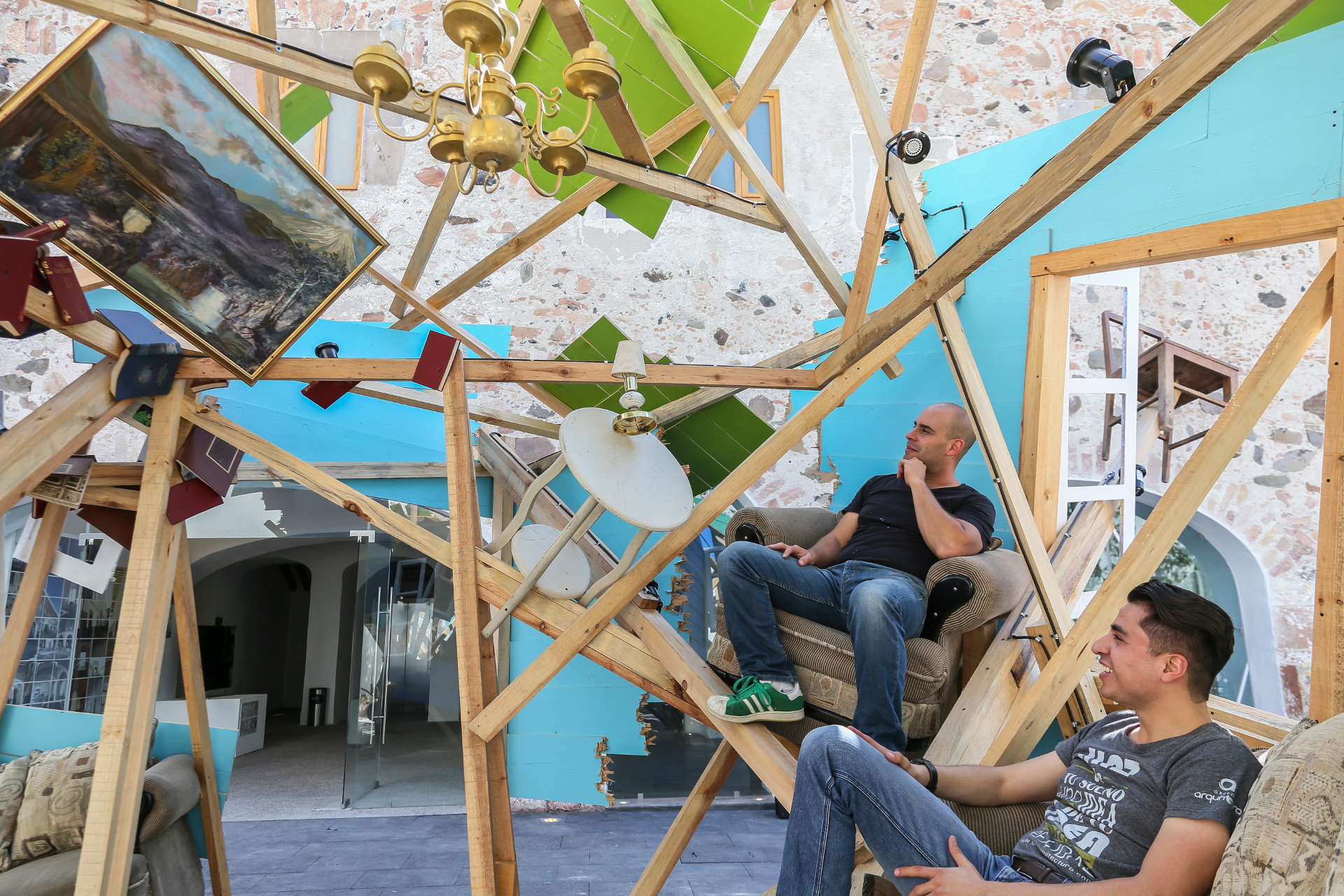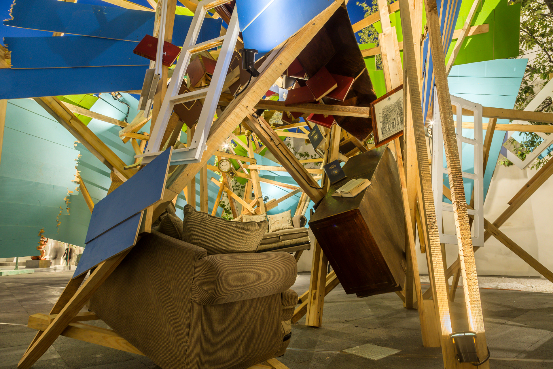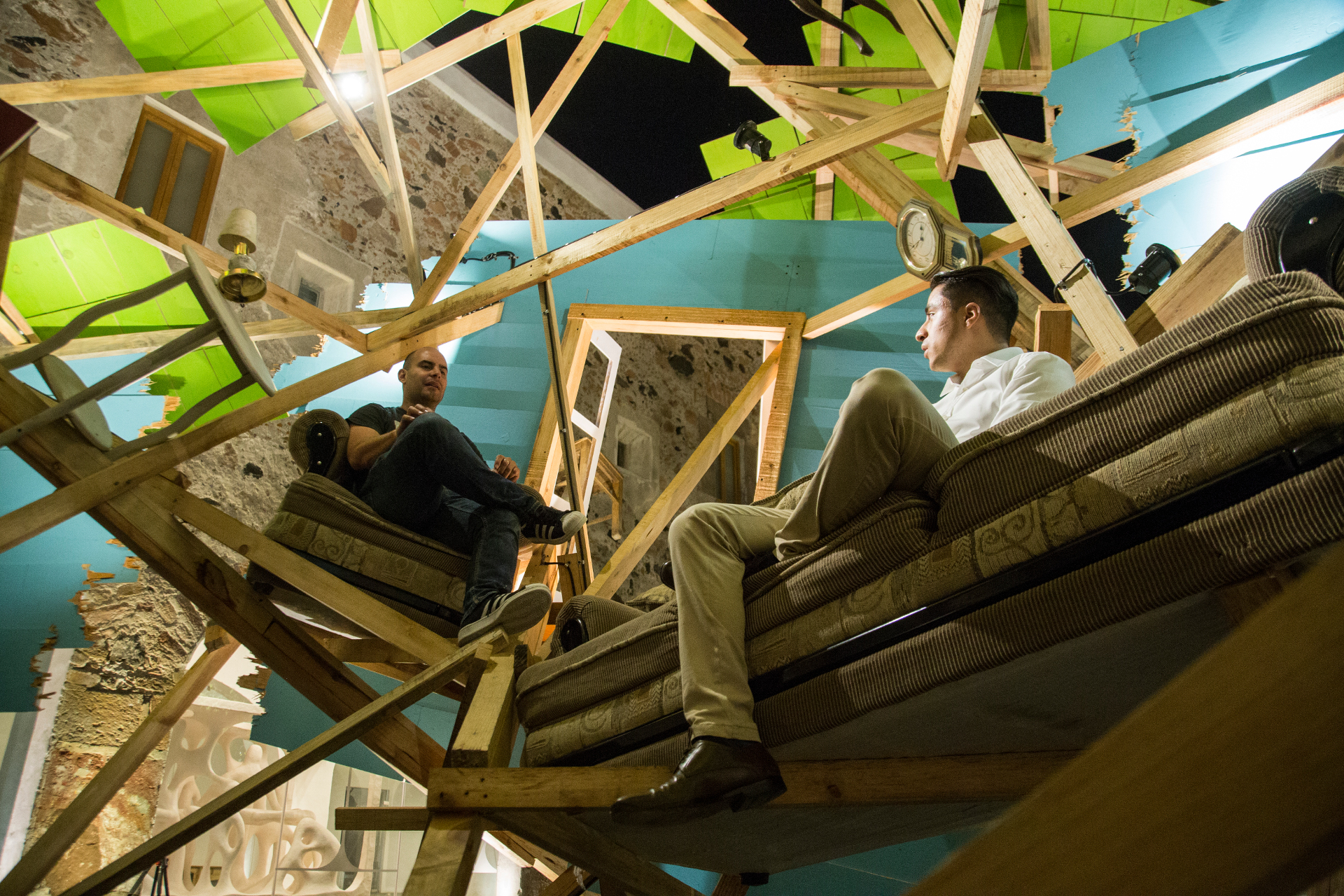 Home es la escultura que Antonio O’Connell diseño para el Museo de Arte Contemporáneo de Querétaro. Al tratarse de una obra que emula la sensación de estar dentro de una casa, la iluminación obedece a esa misma lógica, con reflectores y luces puntuales colocadas en los lugares en los que normalmente iluminaríamos una casa, el resultado es una sensación única dentro de esta “casa” tan peculiar.
