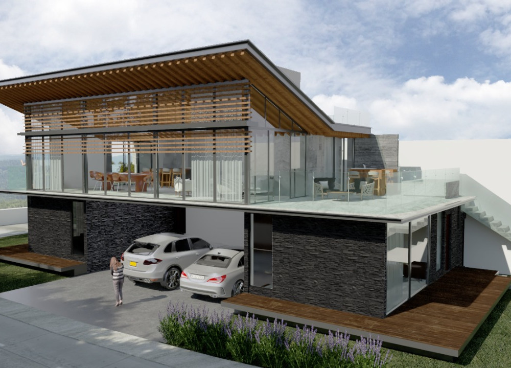 Esta residencial está conceptualizada totalmente hacia las vistas del lago y su contexto. Por ello se decidió colocar las áreas públicas de la casa en la Planta Alta y los privadas en la Planta Baja.