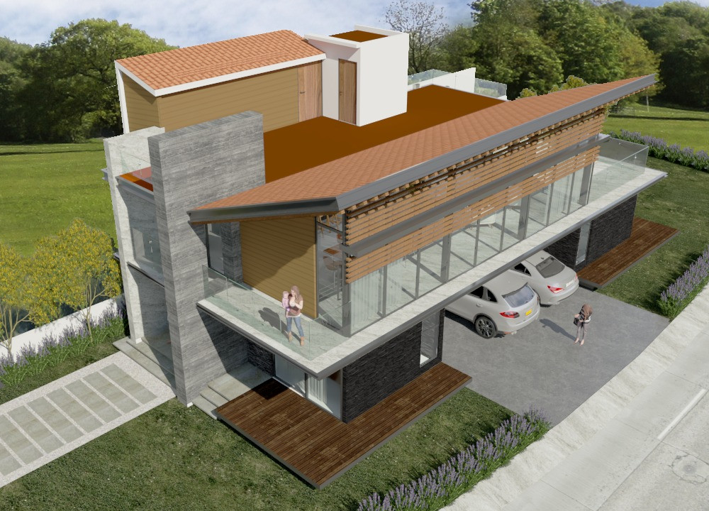 Analizada solarmente de tal forma que la techumbre inclinada siempre brinda sombra y confort visual y de temperatura al interior de la casa durante las 4 estaciones del año.