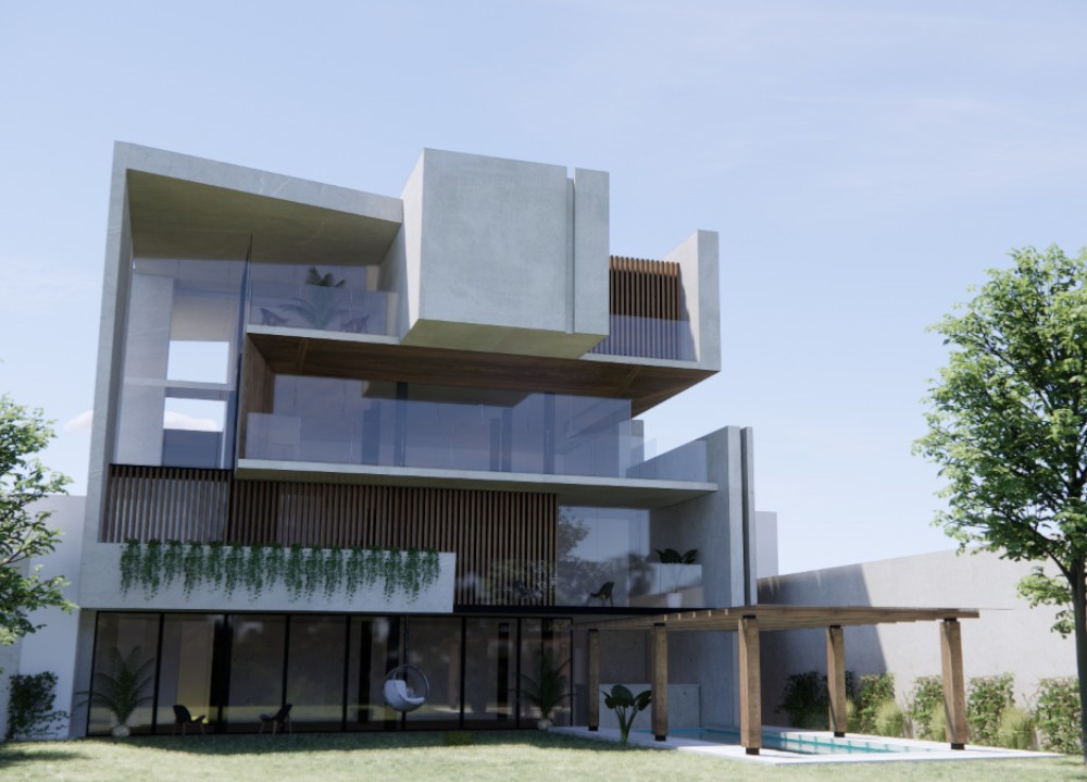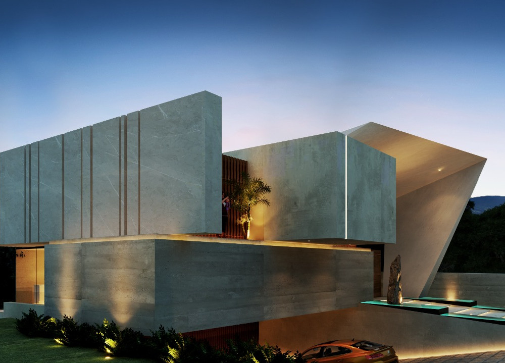 Residencia de estilo minimalista, busca darte la bienvenida con sus planos asimétricos y con movimiento que prologan la perspectiva de la misma y cuidan del asoleamiento y confort visual de la misma.