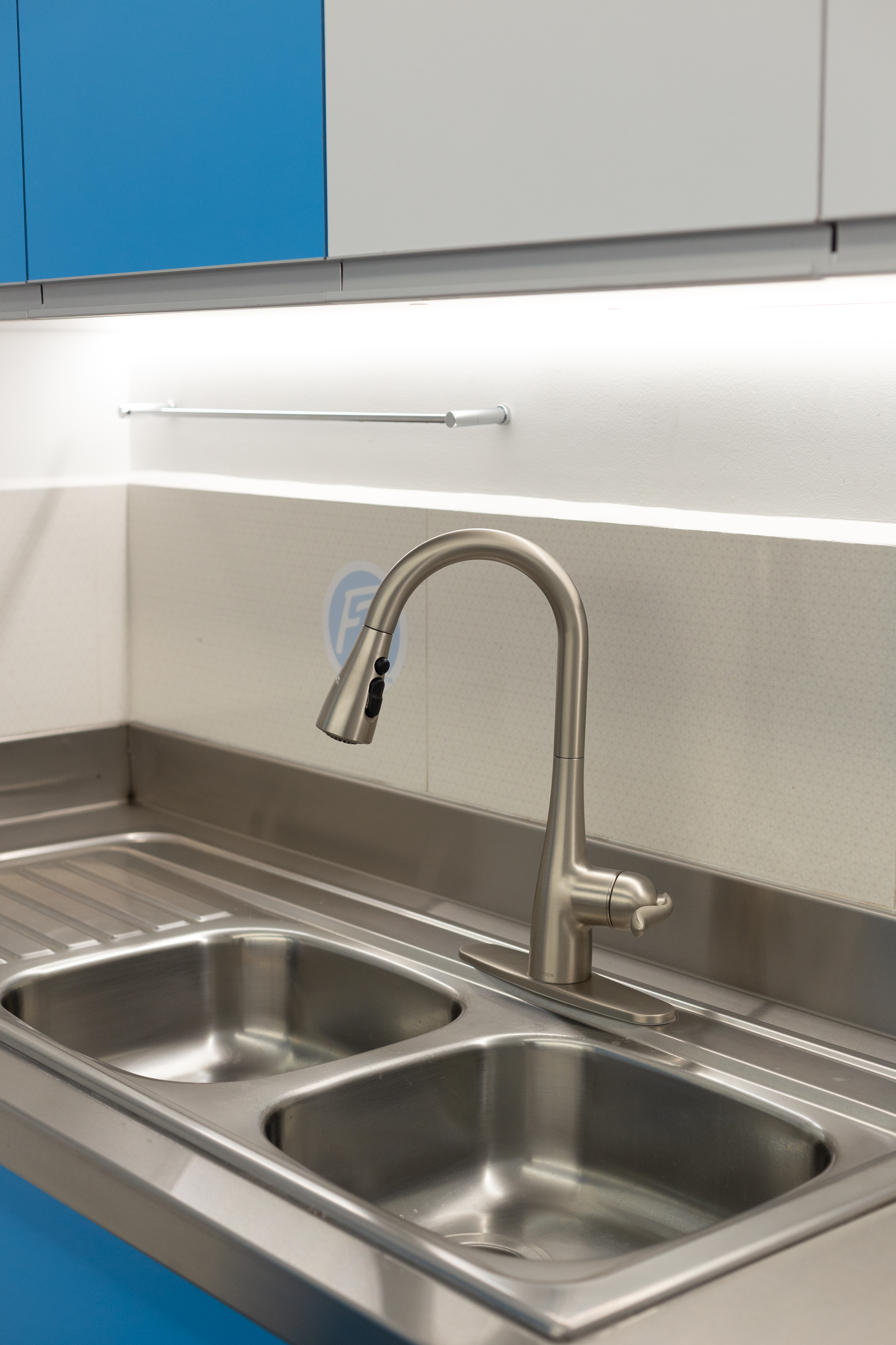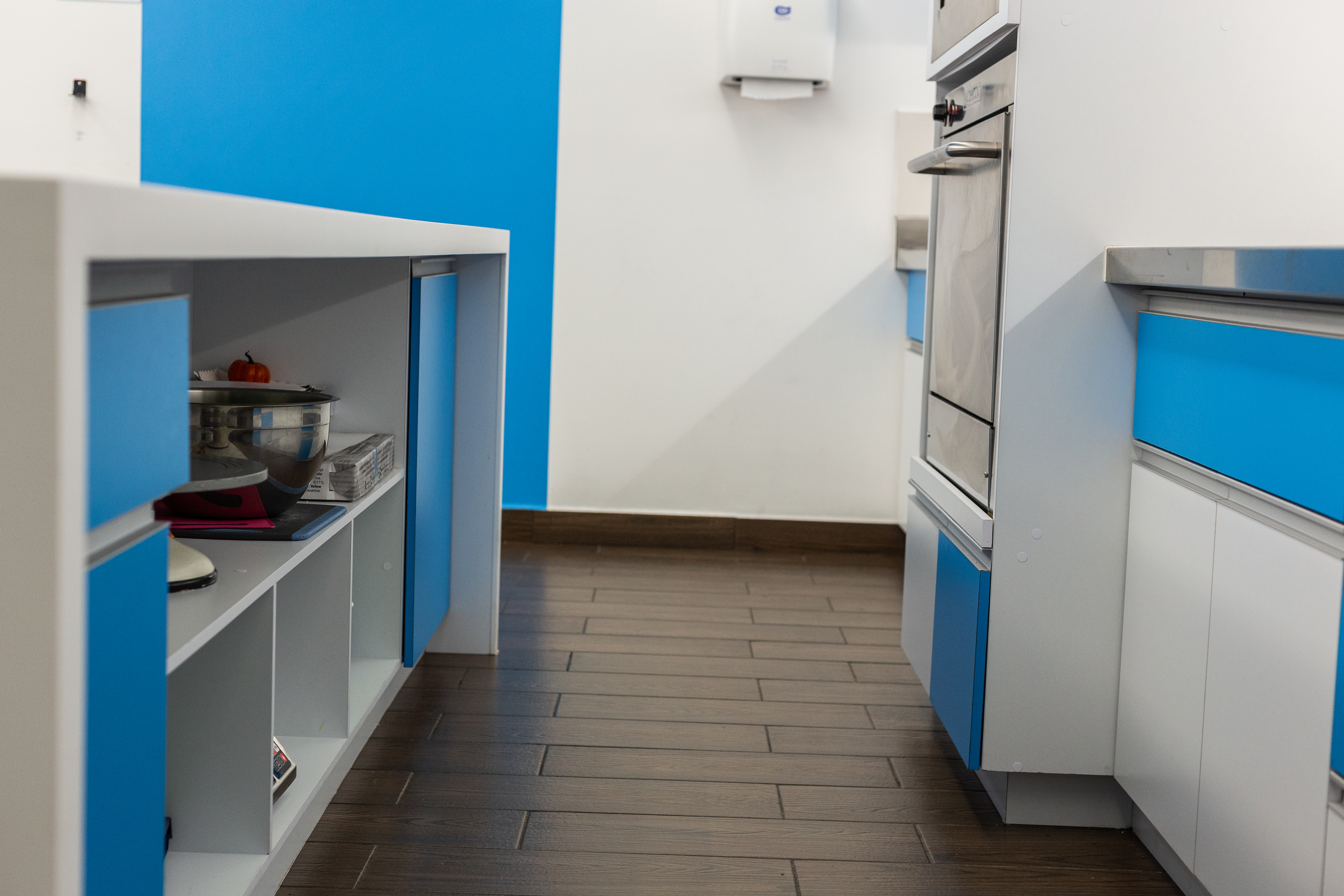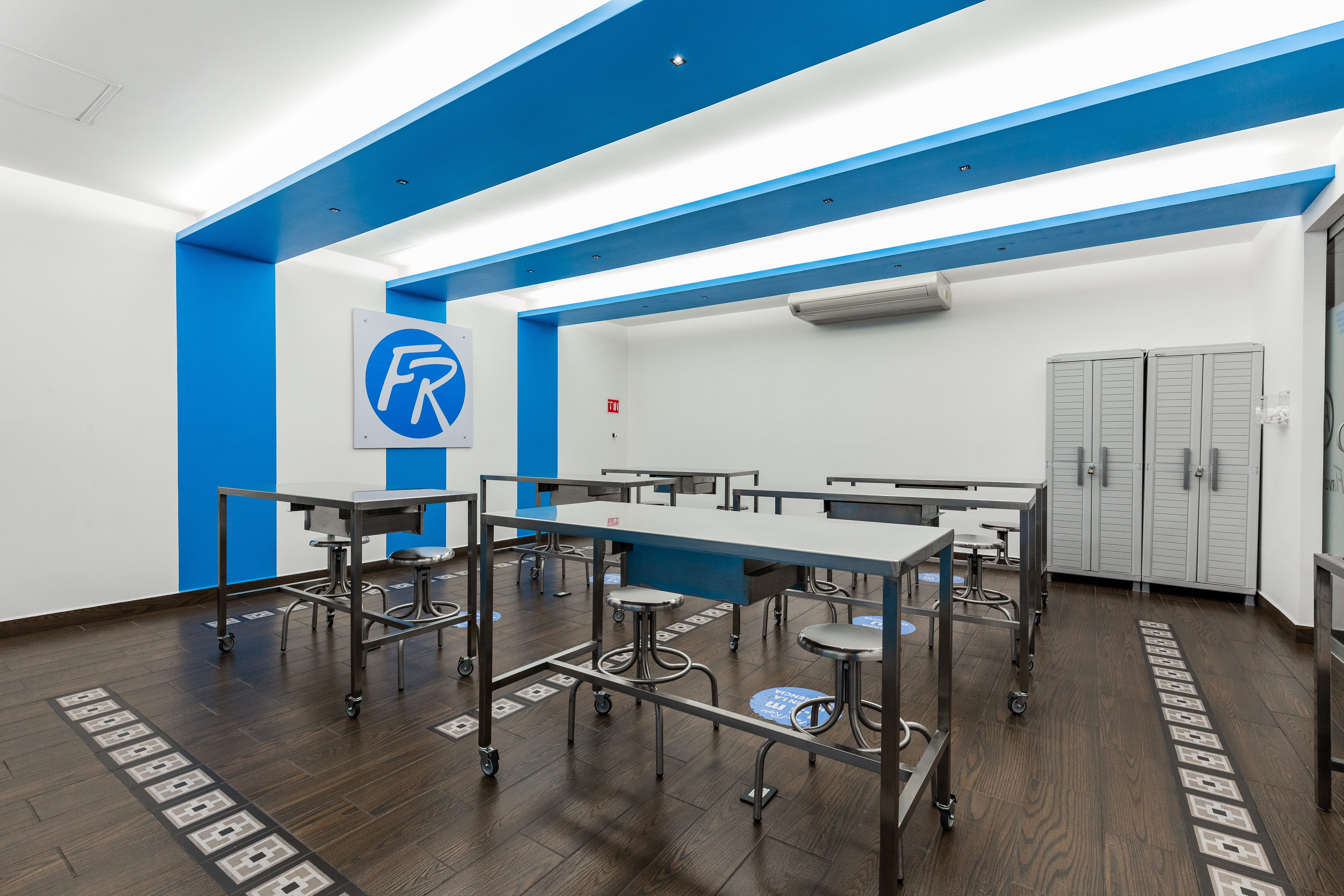 Un espacio diseñado para la capacitación y demostración de producto de Flavor Right. A través de la barra, tipo isla, buscamos enfatizar la atención de quienes toman la sesión con el chef. Una isla que resalta por su pureza y brillo, permitiendo la mejor apreciación de los productos que se están utilizando para la demostración.