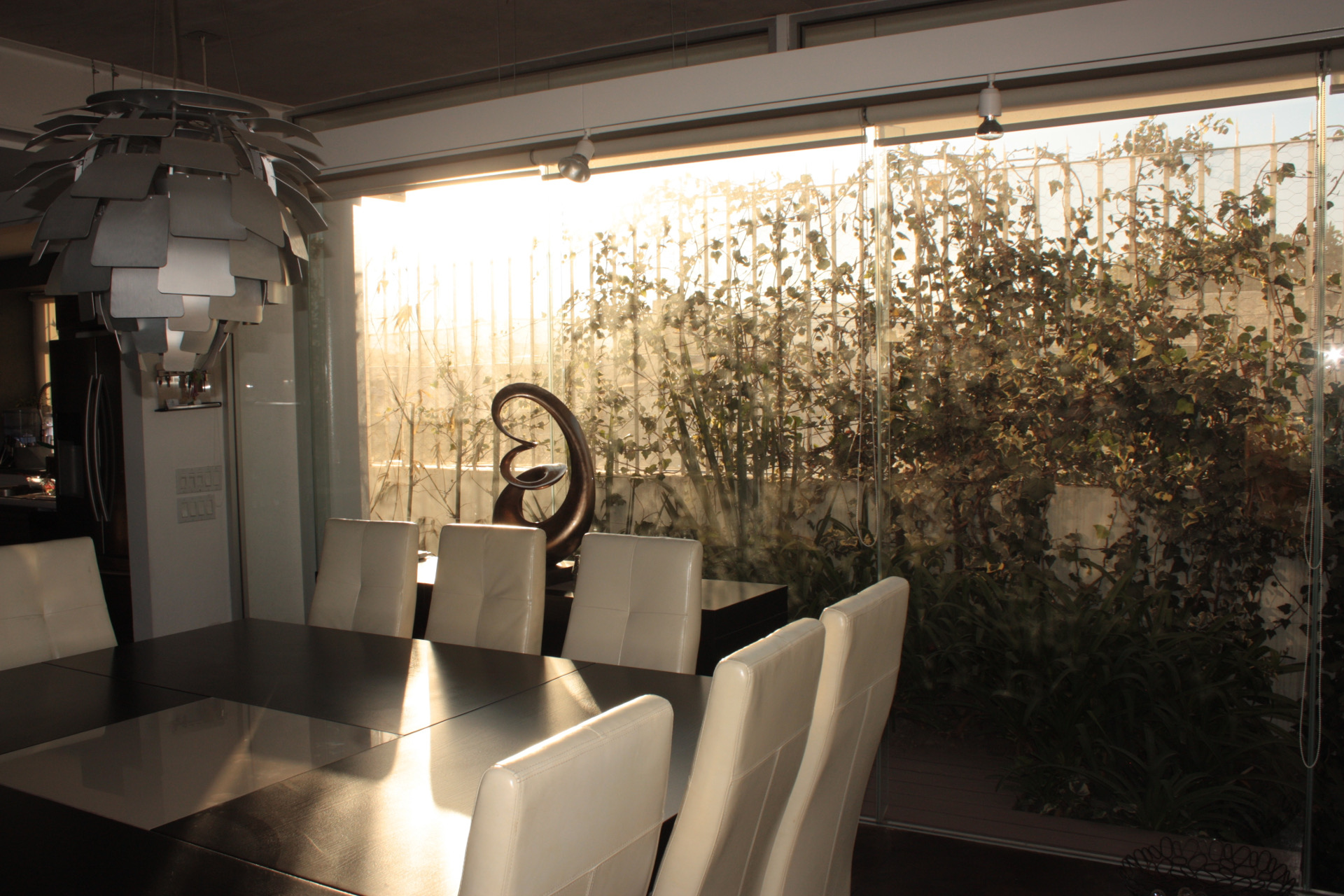 Casa HLC se conceptualizó como un espacio transicional y de apertura, que no se reprimiera al momento de hablar de lo que es. La fachada es conservadora, de aspecto hermético, sin embargo, al atravesar la puerta el espacio se abre y la casa muestra todas sus virtudes, no solo funcionales pero esteticas. Desde el umbral, se aprecian la sala, la cocina, el comedor y el patio trasero. Los acabados tienen una tendencia “high tech” que exhibe orgullosa sus materiales y los vuelve parte de la decoración.