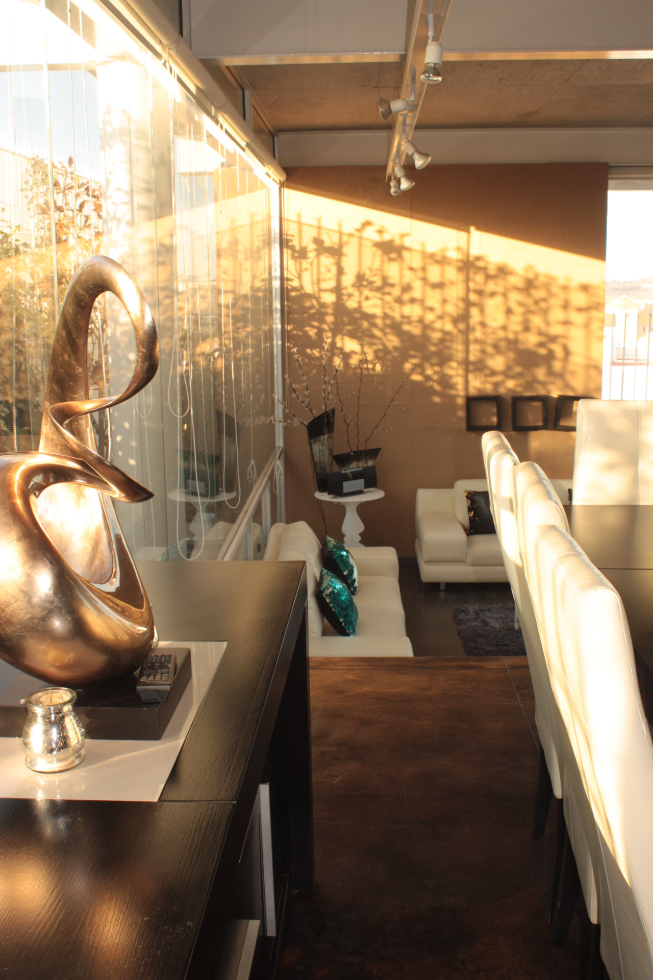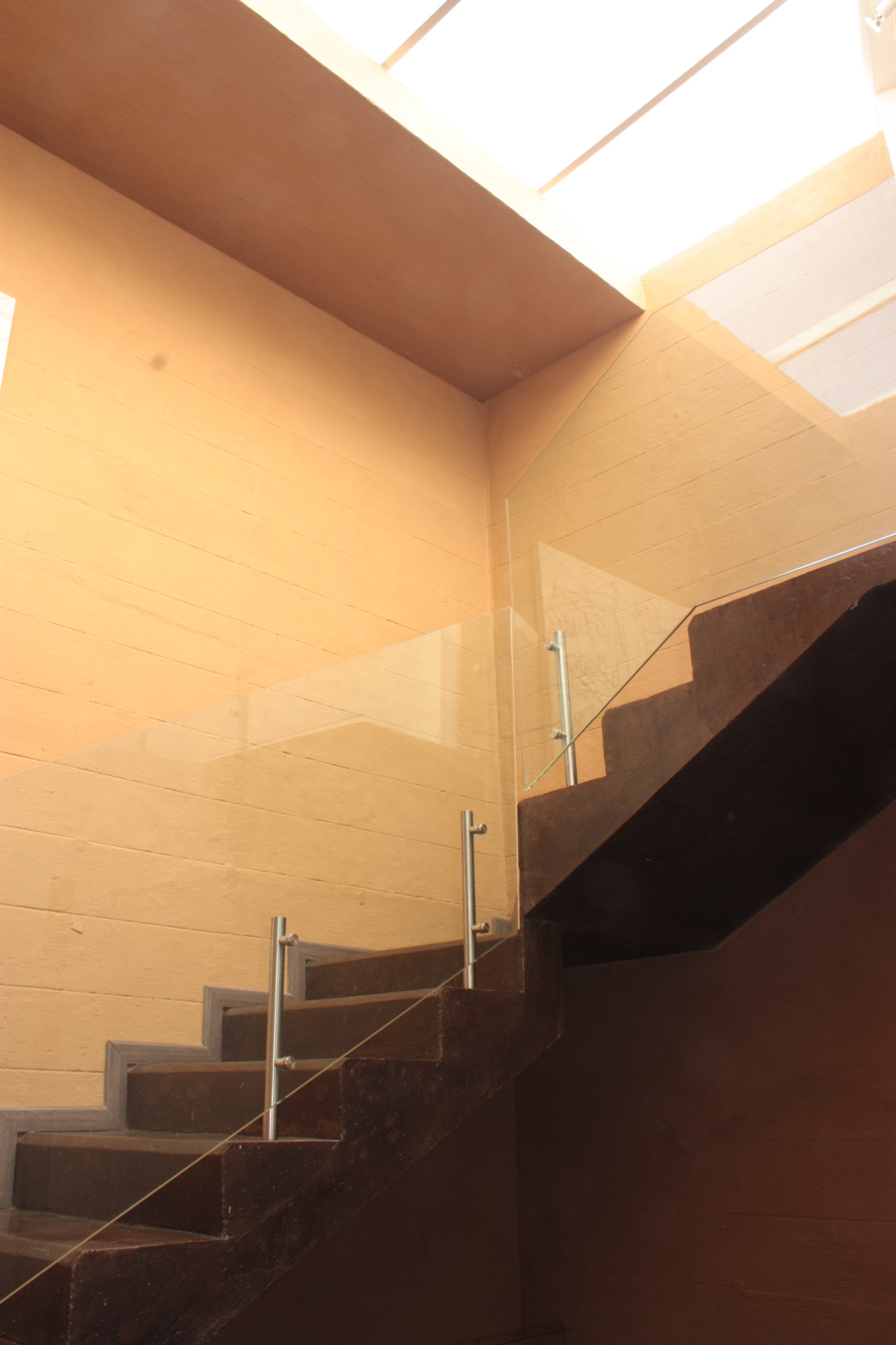 La elección de telas y colores, hace juego con los aluminios pulidos, concretos oxidados y los amplios ventanales que presumen los jardines laterales. Aunado a esto, recibe mención a parte, el muro de las escaleras hecho con adobe natural que es el acento restante de los acabados siendo protagonistas del proyecto.