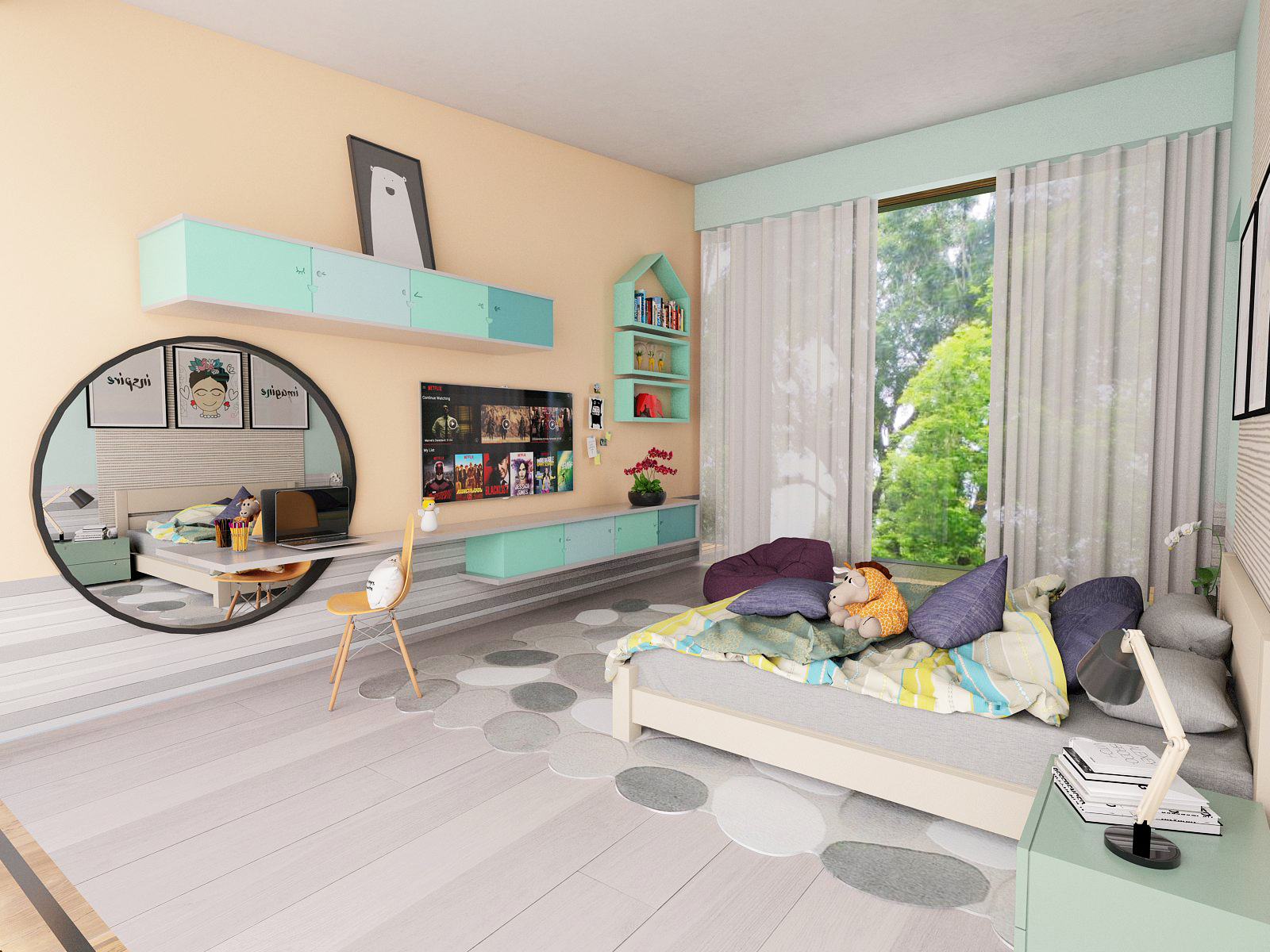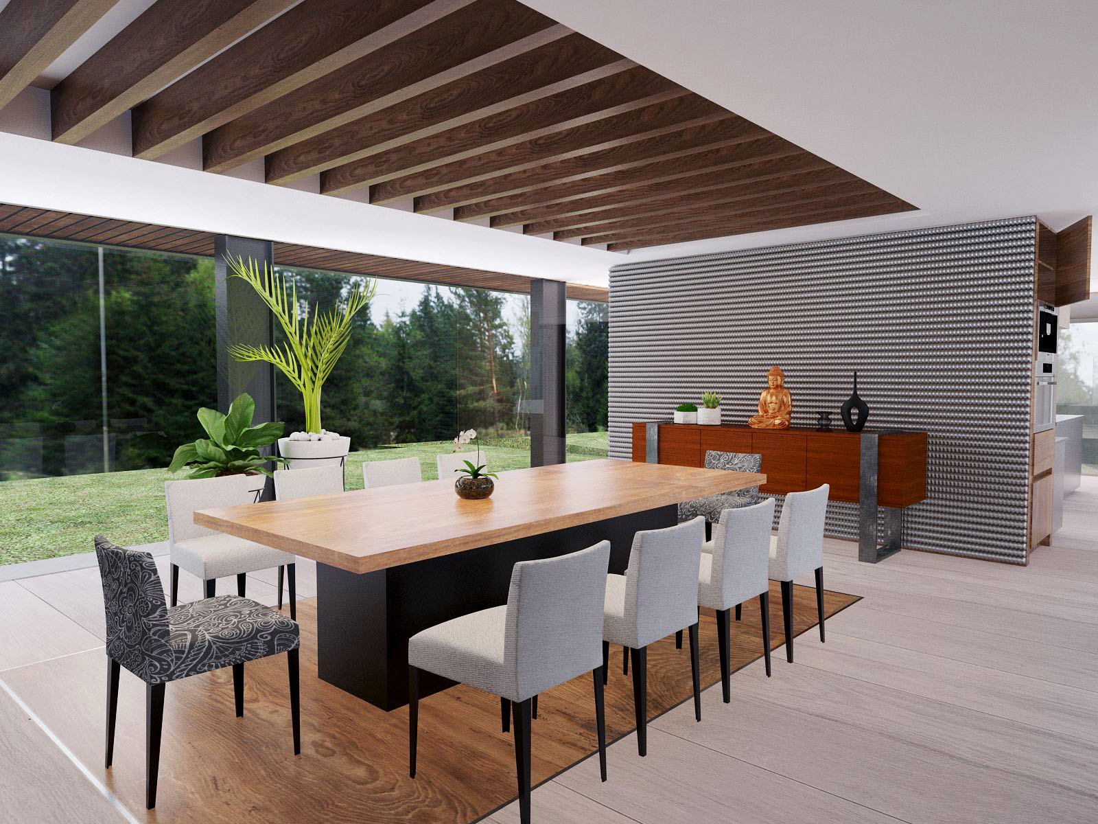Otro punto que vale la pena mencionar es el comedor que se encuentra protagonizando uno de los espacios de la casa donde la madera cobra un papel preponderante. Del mismo modo las habitaciones están pensadas de manera amable con una selección de colores pastel que invitan a pasar mucho tiempo dentro de ellas y promueven una tranquilidad casi inquietante sin que esto llegue a molestar.